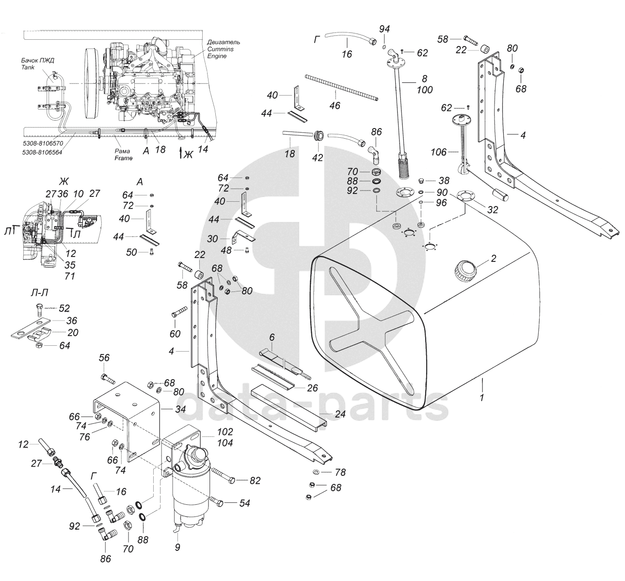 4308-1100030-10 Установка топливного бака, фильтра грубой очистки топлива и топливопроводов