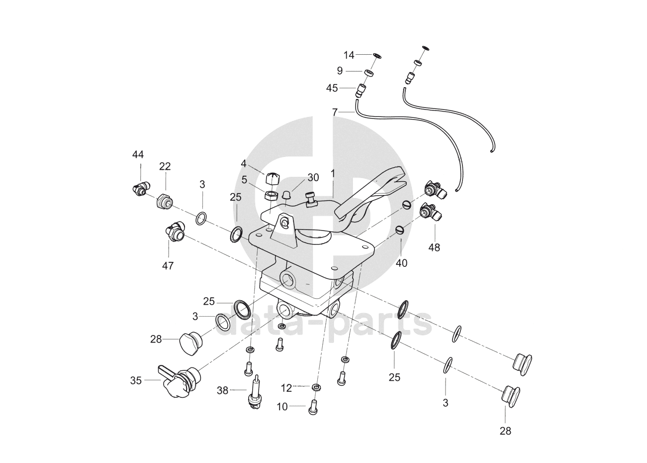 Кран КАМАЗ-ЕВРО тормозной 2-х секционный в сборе с педалью