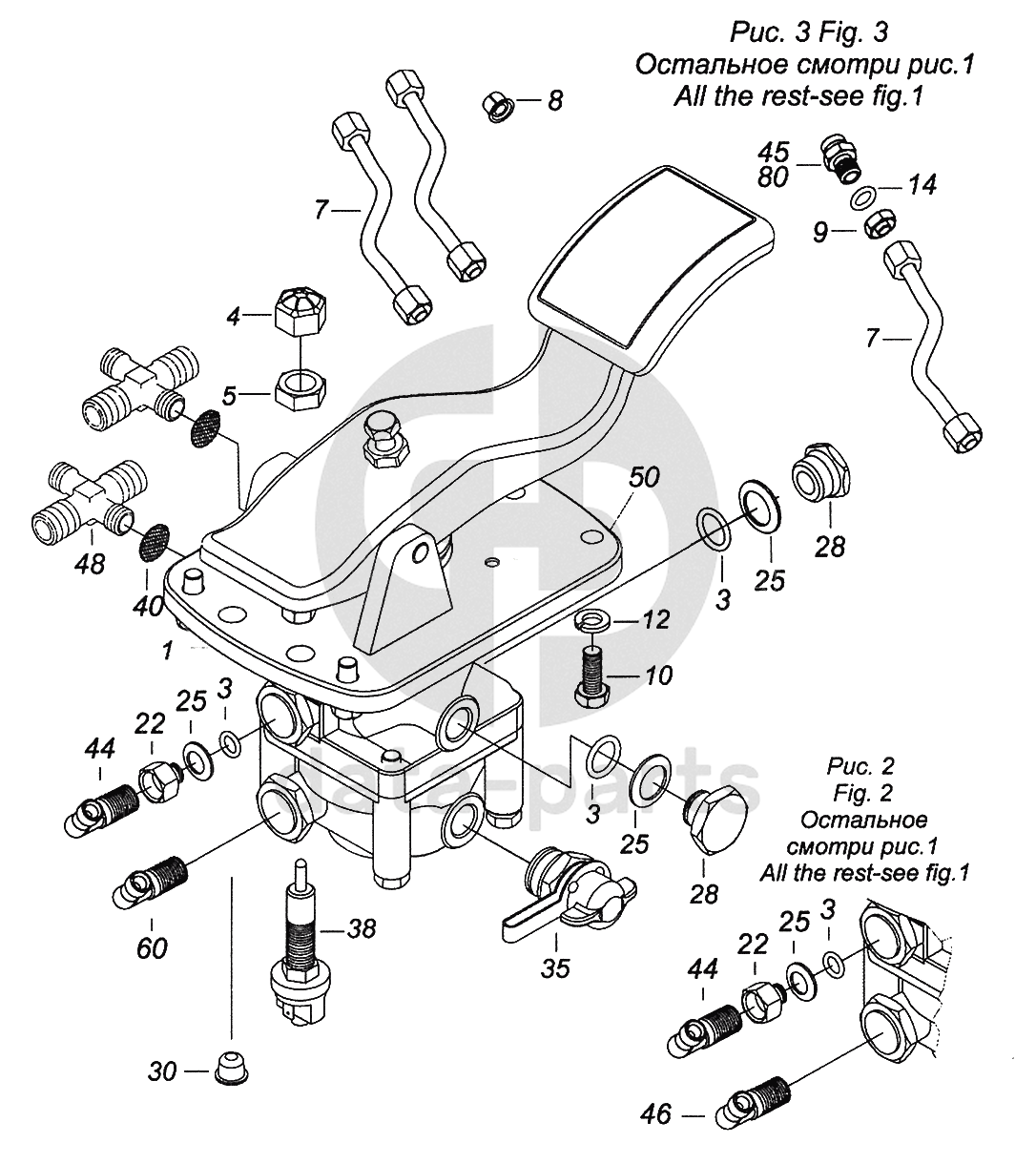 Кран КАМАЗ-ЕВРО тормозной 2-х секционный в сборе с педалью