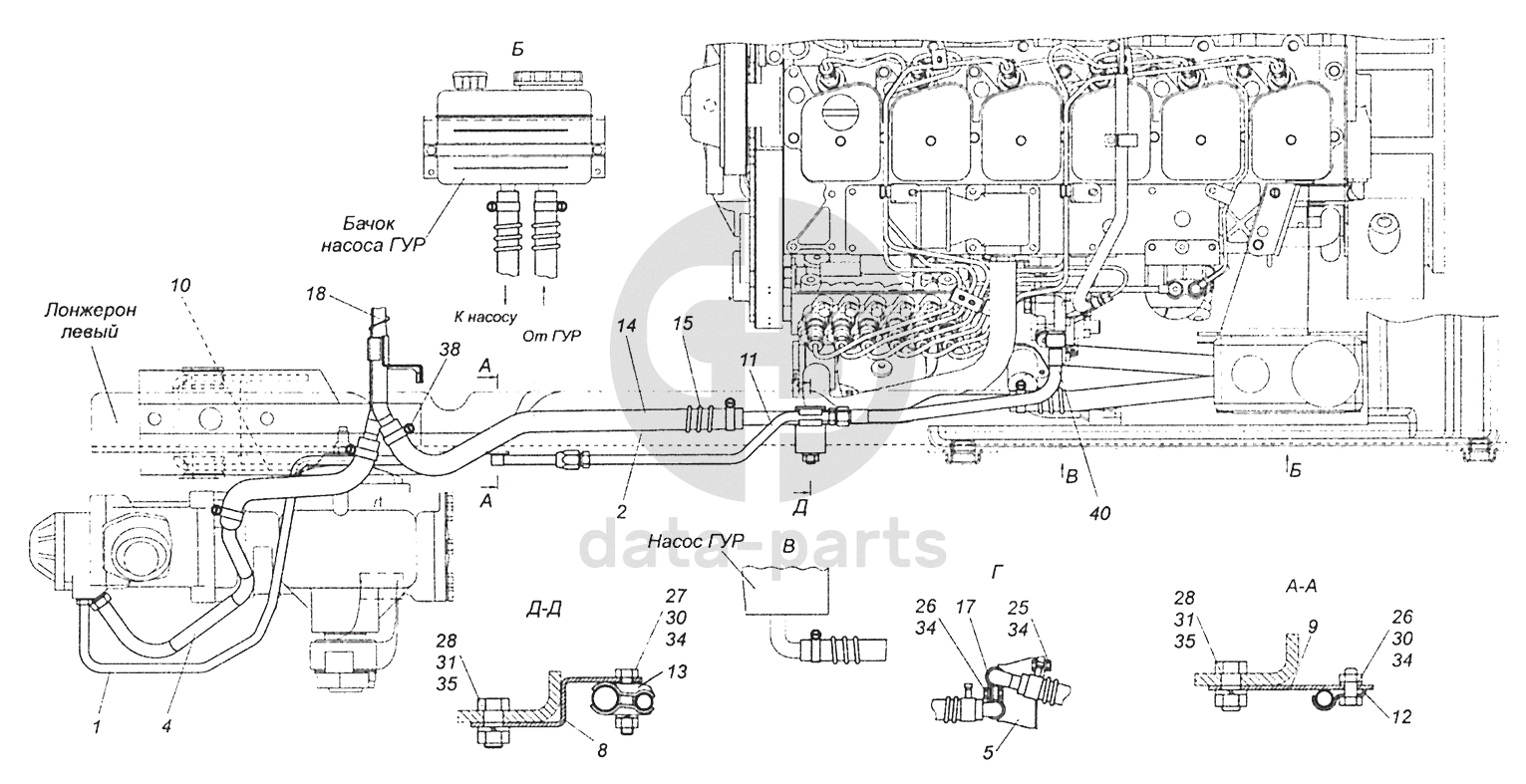 Трубка КАМАЗ-65115 низкого давления механизма рулевого в сборе