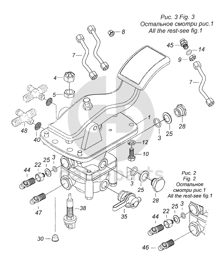 Кран тормозной двухсекционный с педалью в сборе