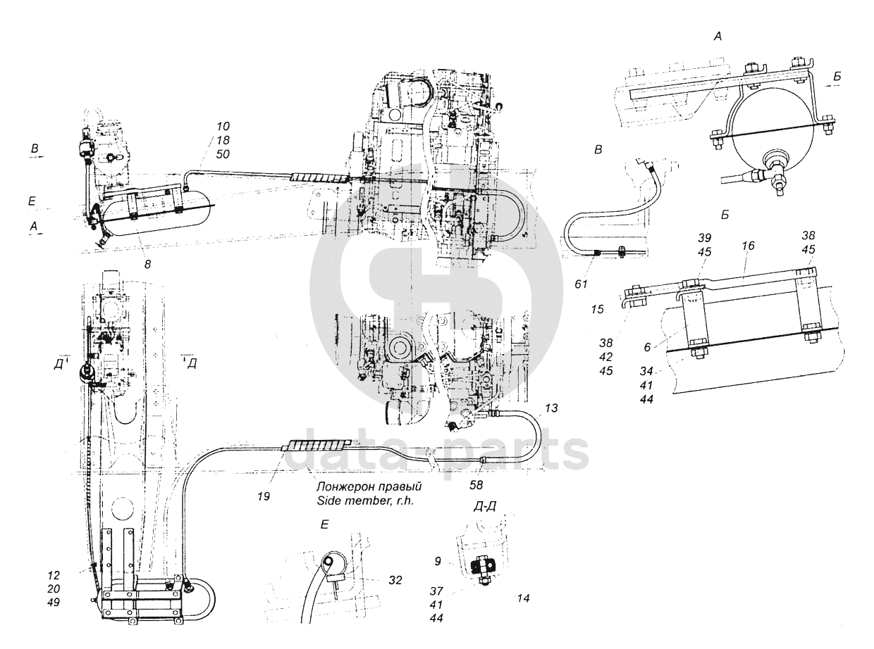 43255-8106002-10 Установка топливного бачка и топливопроводов подогревателя 14ТС