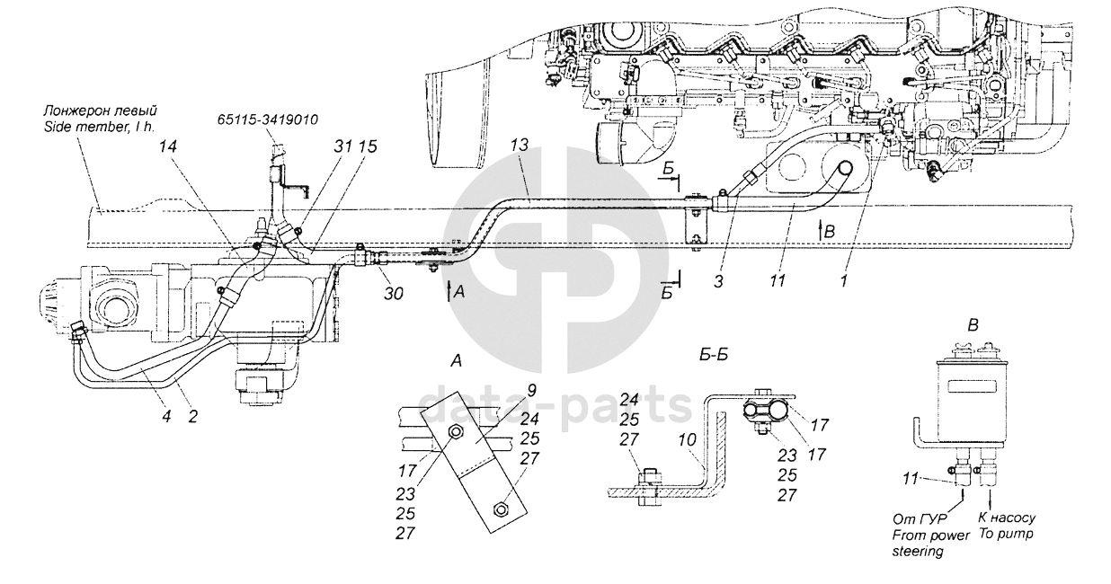 Трубка КАМАЗ-65115 высокого давления ГУРа