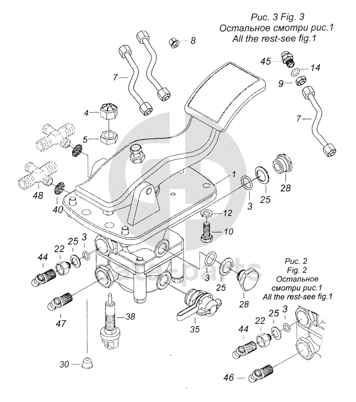 Кран тормозной двухсекционный с педалью в сборе