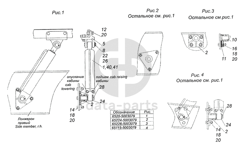 6520-5003079 Установка гидроцилиндра кабины