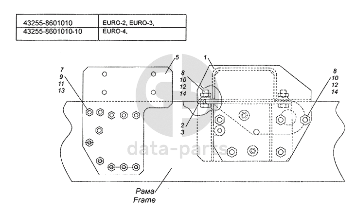 43255-8601010 Установка кронштейна и поперечины гидроцилиндра