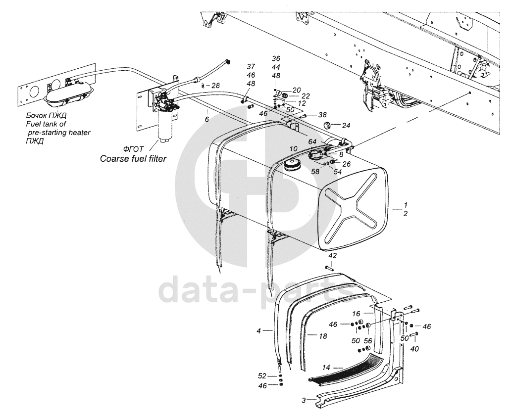Бак топливный КАМАЗ 350л (530х650х1150) без крышки (одно отверстие)