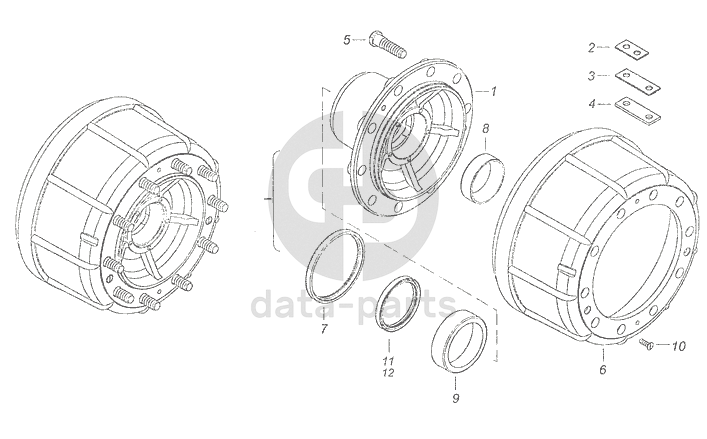 Ступица переднего колеса с тормозным барабаном