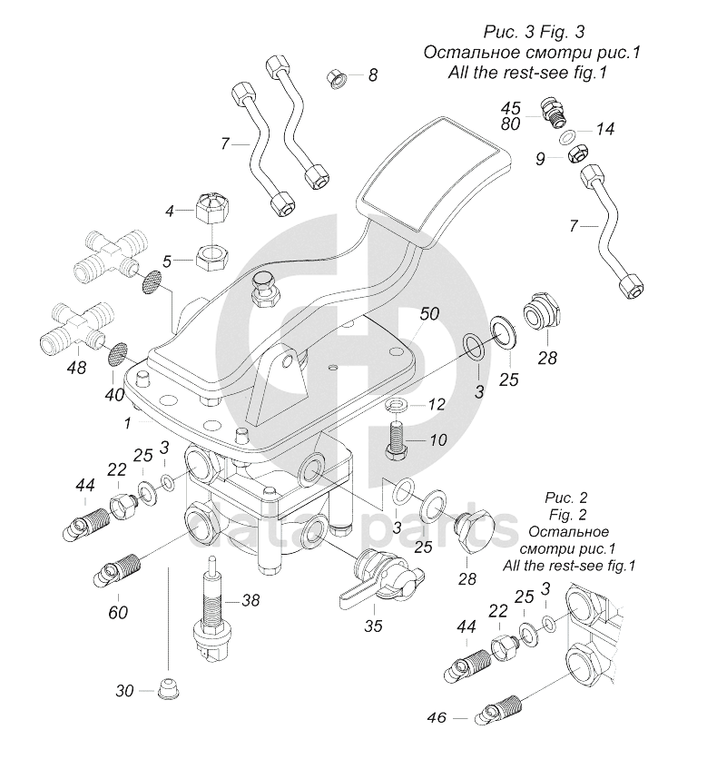 Кран тормозной двухсекционный с педалью в сборе