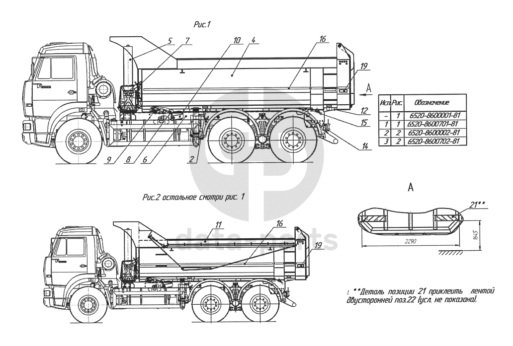 Самосвальная установка 6520-8600001-81, 6520-8600701-81, 6520-8600002-81, 6520-8600702-81