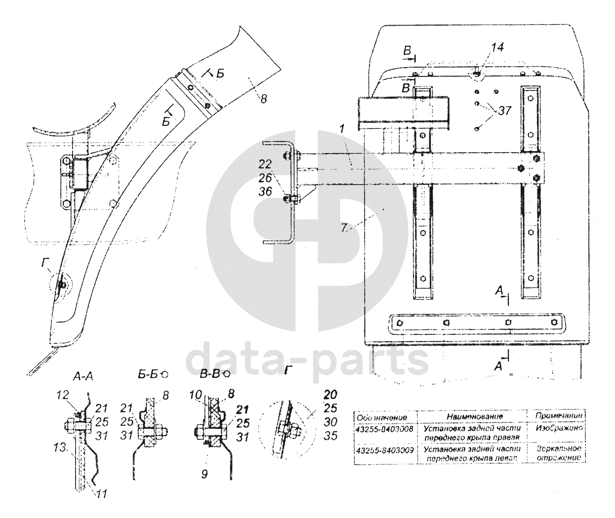 43255-8403008 Установка задней части переднего крыла правая
