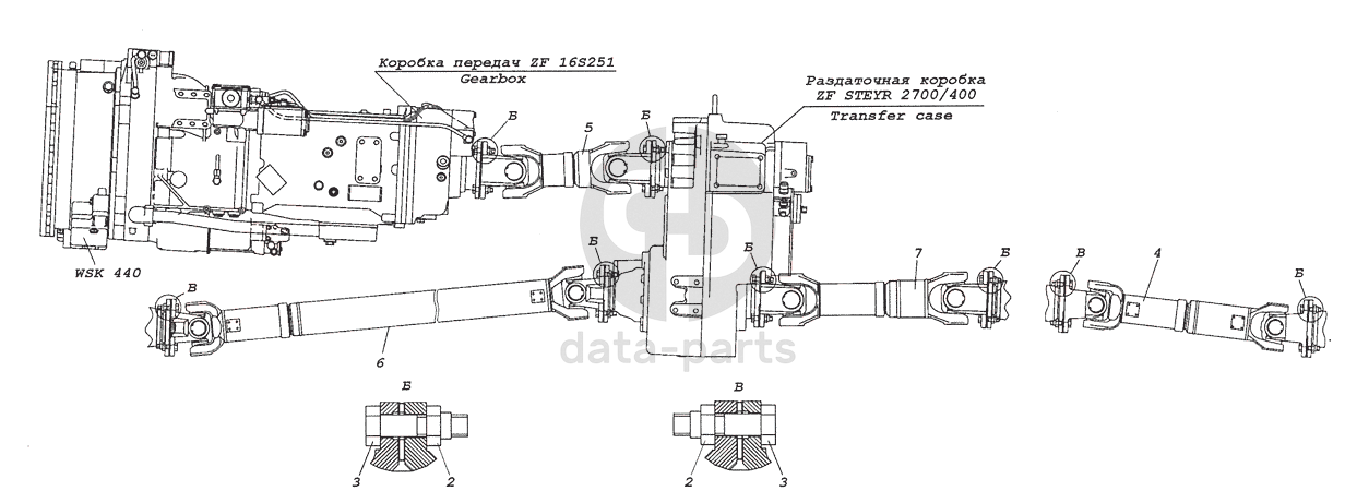 Вал карданный заднего моста (Spicer compact 2000-2040 с изменяемой длиной Lz = 701мм)