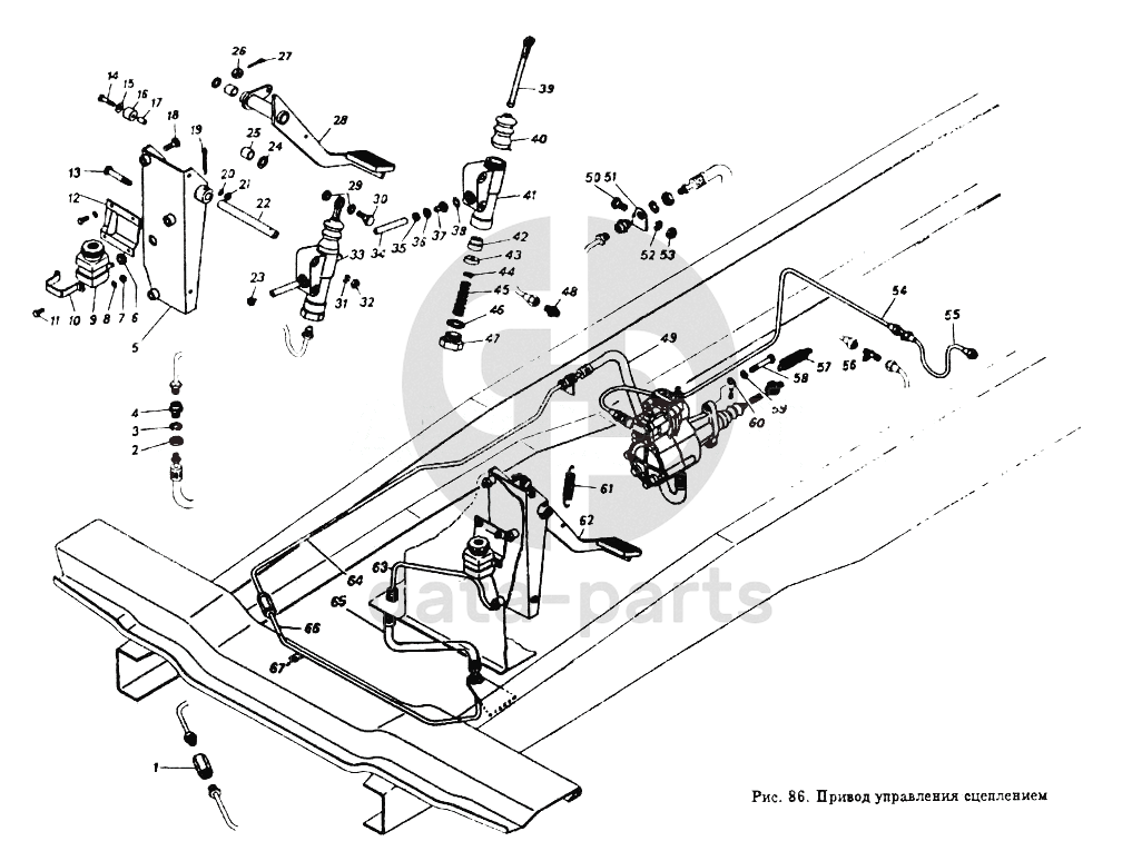 Педаль сцепления с кронштейном и главным цилиндром в сборе