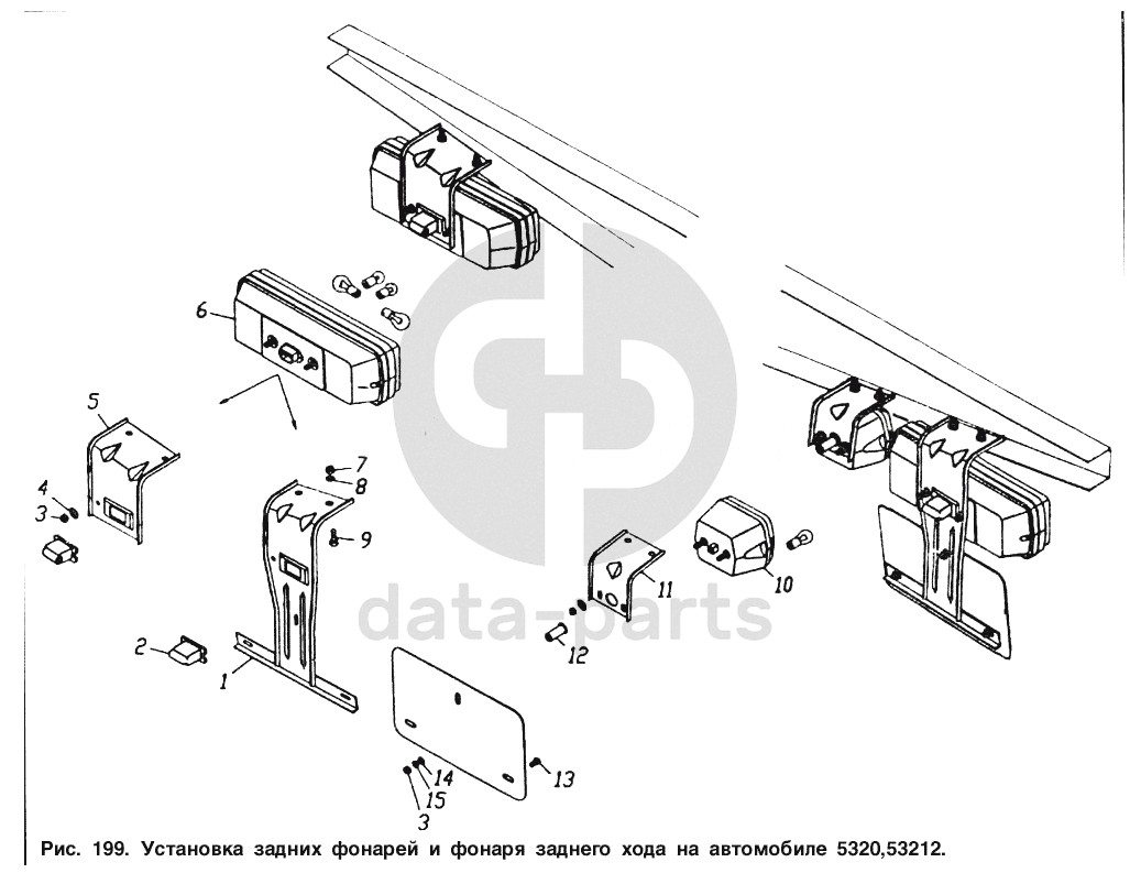 Установка задних фонарей и фонаря заднего хода на автомобиле 5320, 53212