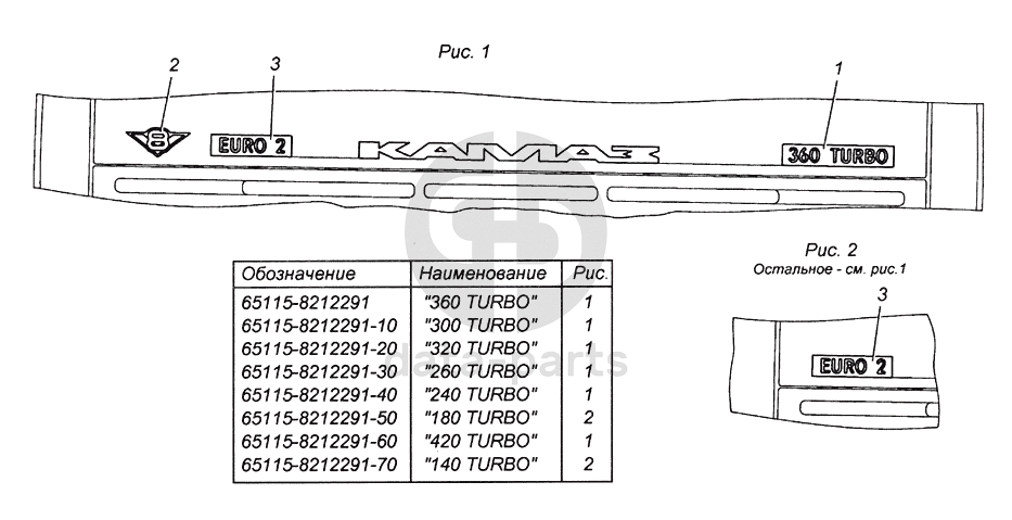 Установка знаков двигателя и 180 TURBO 65115-8212291-50
