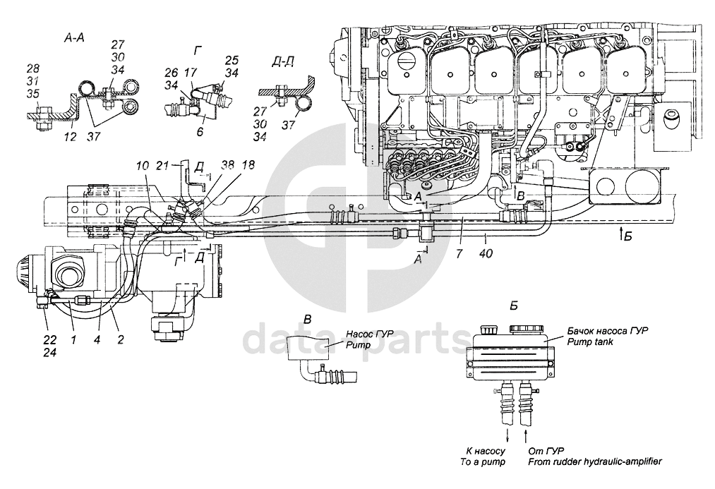 Трубка КАМАЗ-65115 низкого давления механизма рулевого в сборе