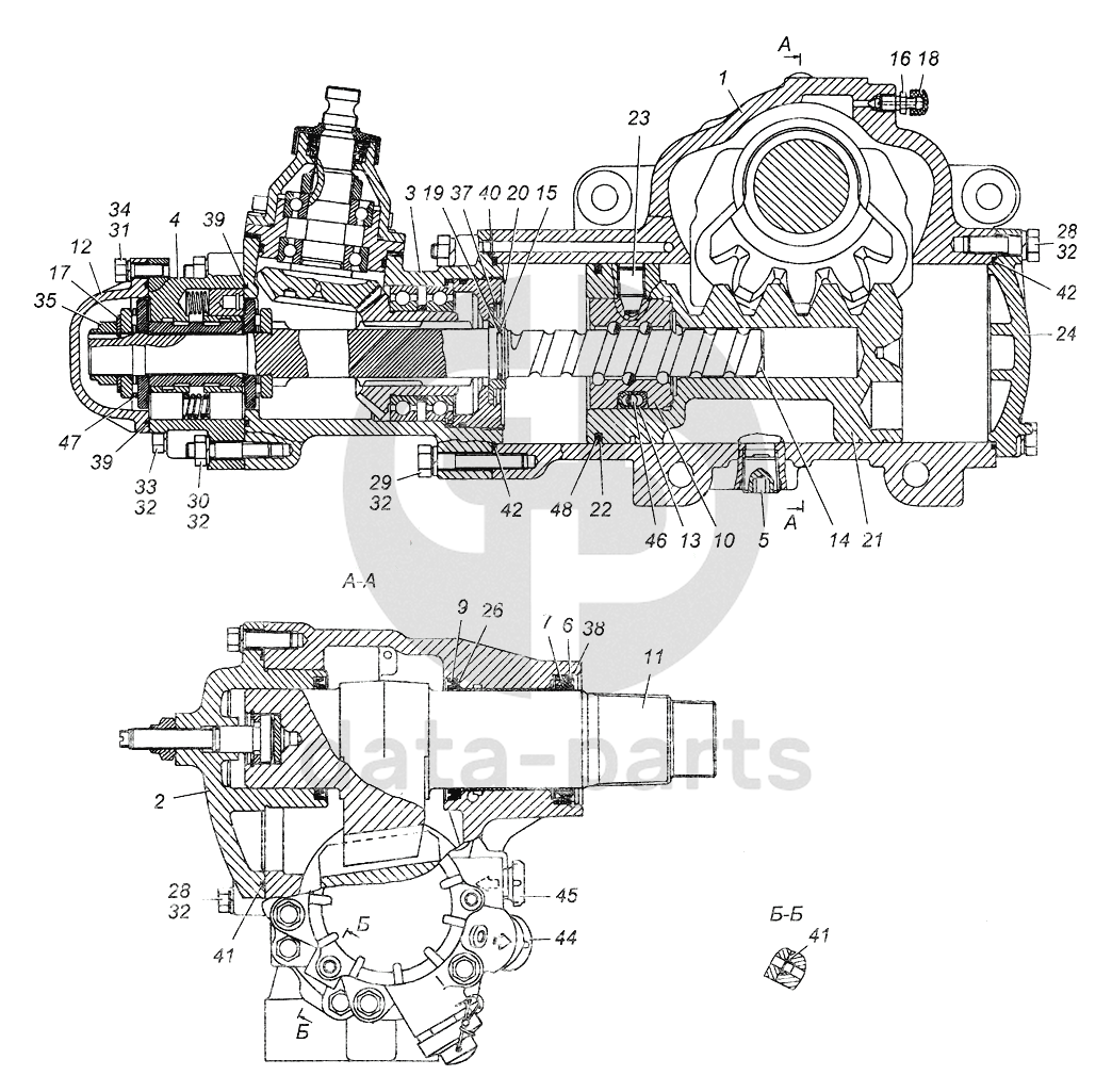 Вал сошки с регулировочным винтом и боковой крышкой
