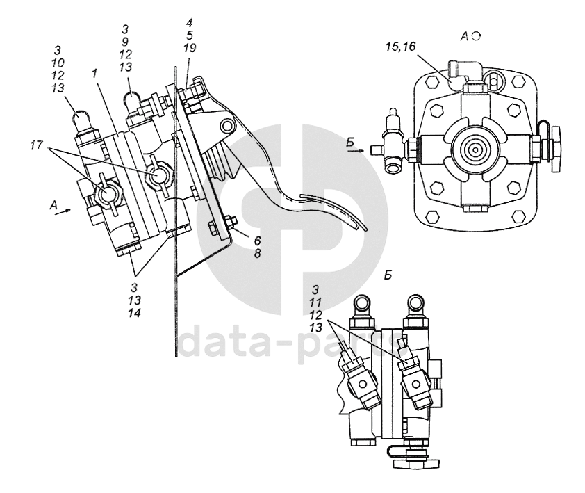 Кран КАМАЗ-ЕВРО тормозной 2-х секционный в сборе с педалью