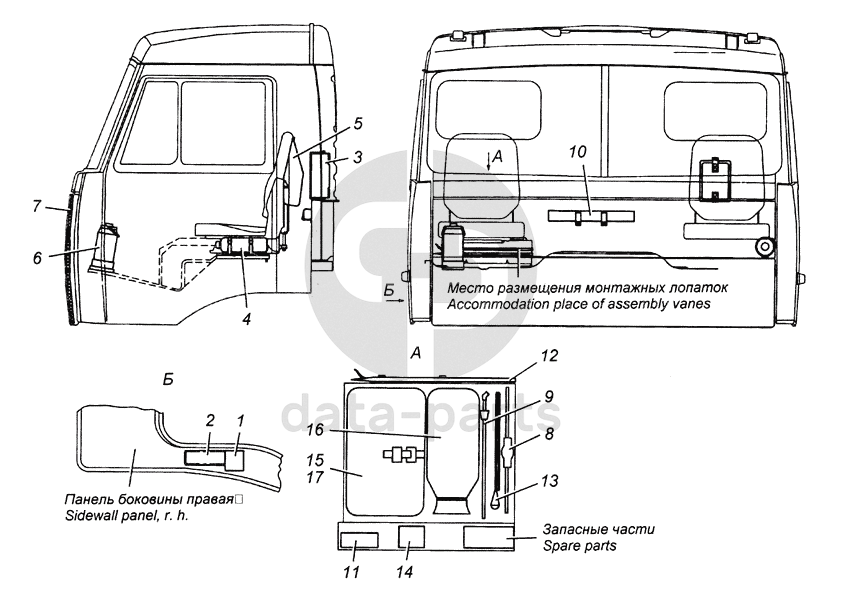 Установка инструмента и принадлежностей в кабине Э4308-3900010