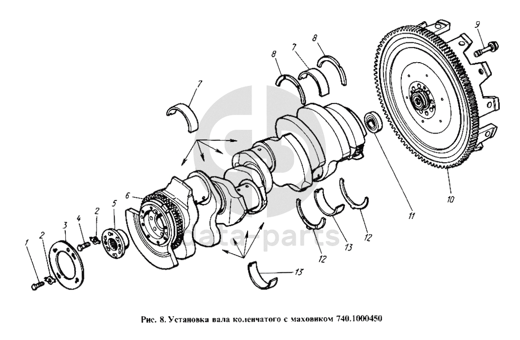 Полукольцо упорного подшипника коленчатого вала верхнее