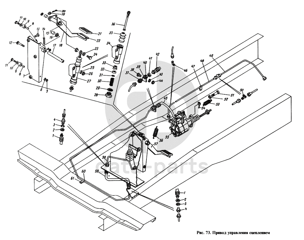 Педаль сцепления с кронштейном и главным цилиндром в сборе