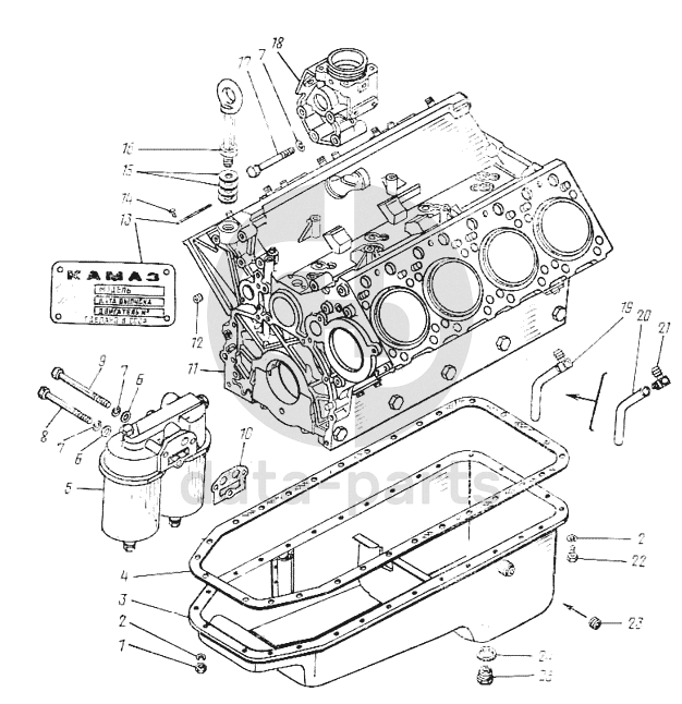 Блок цилиндров, картер масляный и фильтр очистки масла