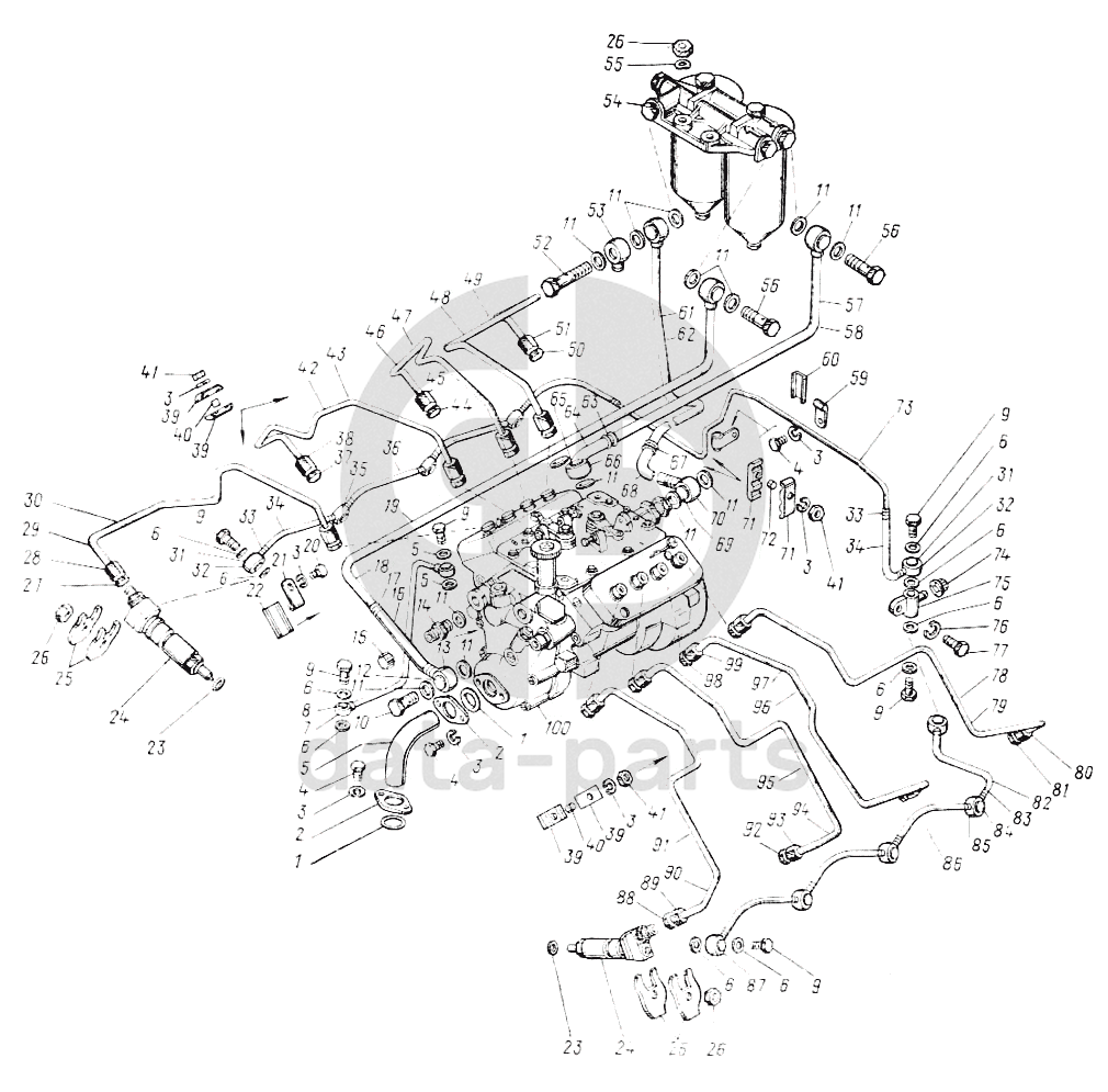 Трубка топливная 4 секции ТНВД в сборе