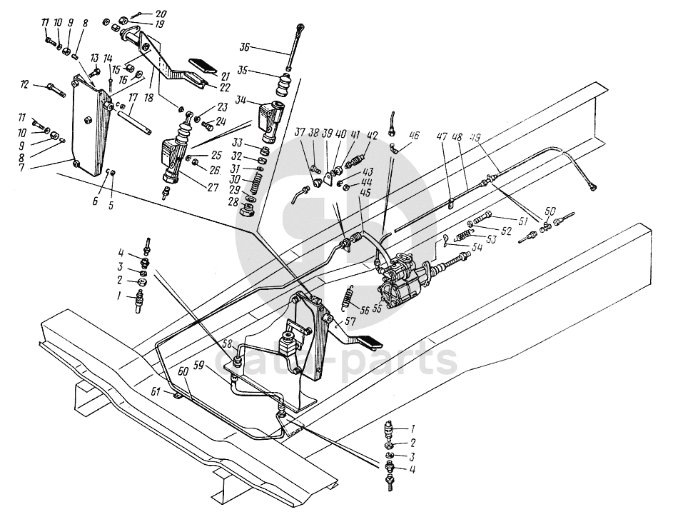 Педаль сцепления с кронштейном и главным цилиндром в сборе