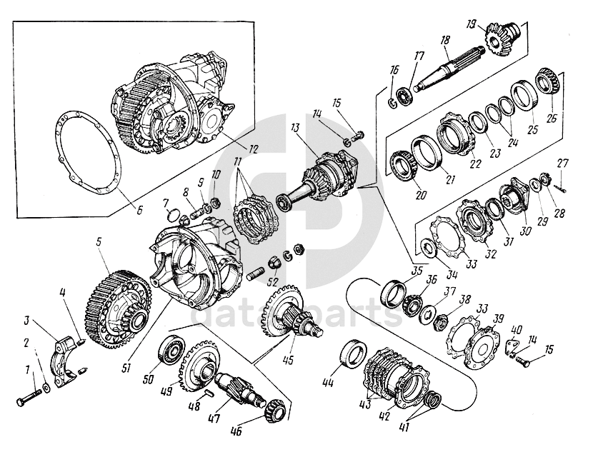 Шестерня ведомая коническая и ведущая цилиндрическая в сборе