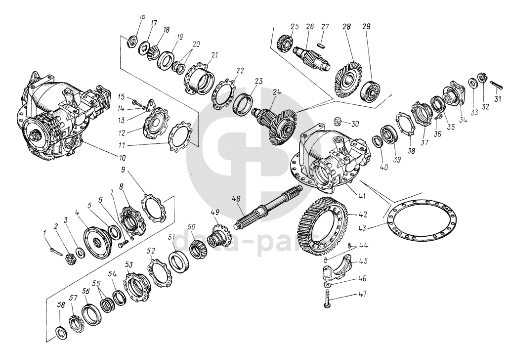 Шестерня ведомая коническая и ведущая цилиндрическая в сборе