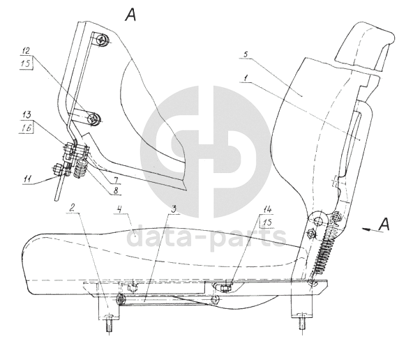 Кронштейн спинки пассажирского сиденья левый в сборе