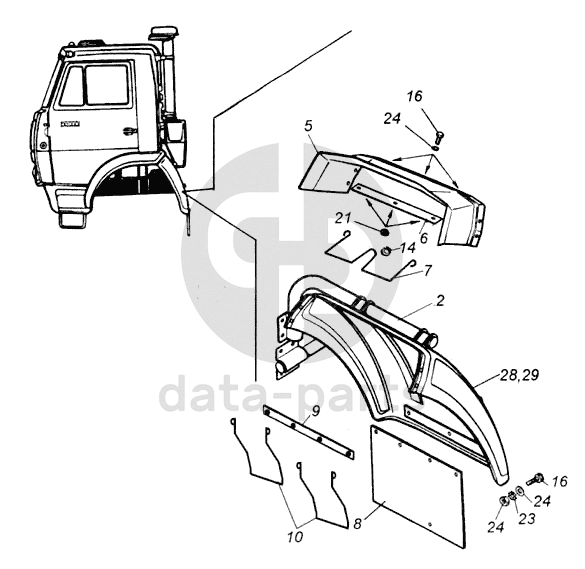 Крыло КАМАЗ-43114 левое задняя часть
