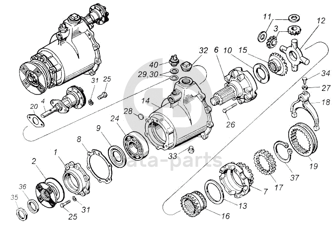Муфта шестерни привода среднего моста межосевого дифференциала