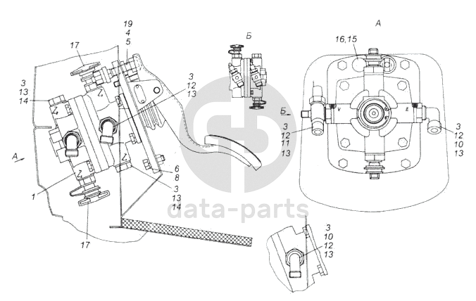 Кран КАМАЗ-ЕВРО тормозной 2-х секционный в сборе с педалью