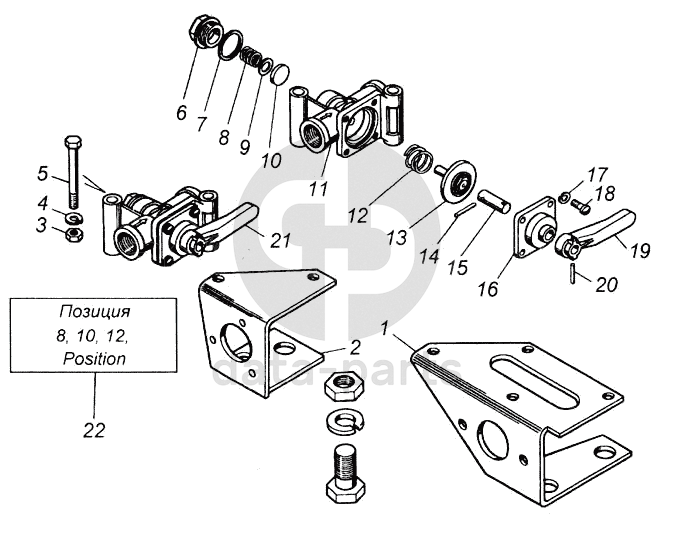 Кронштейн крепления разобщительного крана тормозной магистрали правый