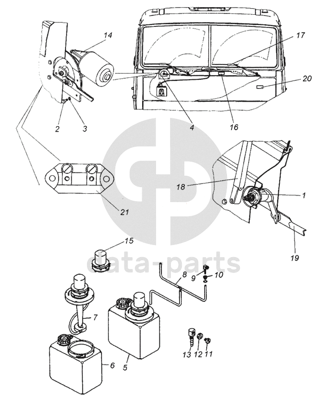 Стеклоочиститель и его привод. Насос водяной очистки стекла