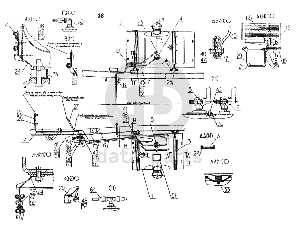 Установка топливного бака, фильтра грубой очистки топлива и топливопроводов