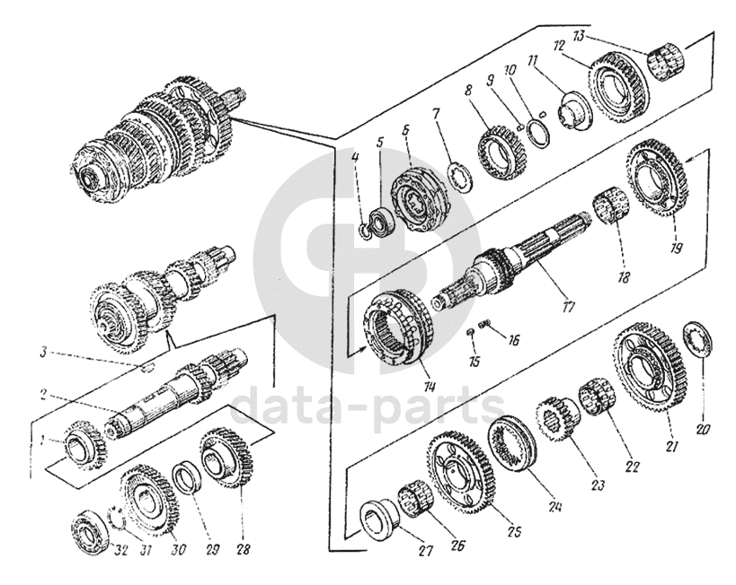 Валы и шестерни коробки передач