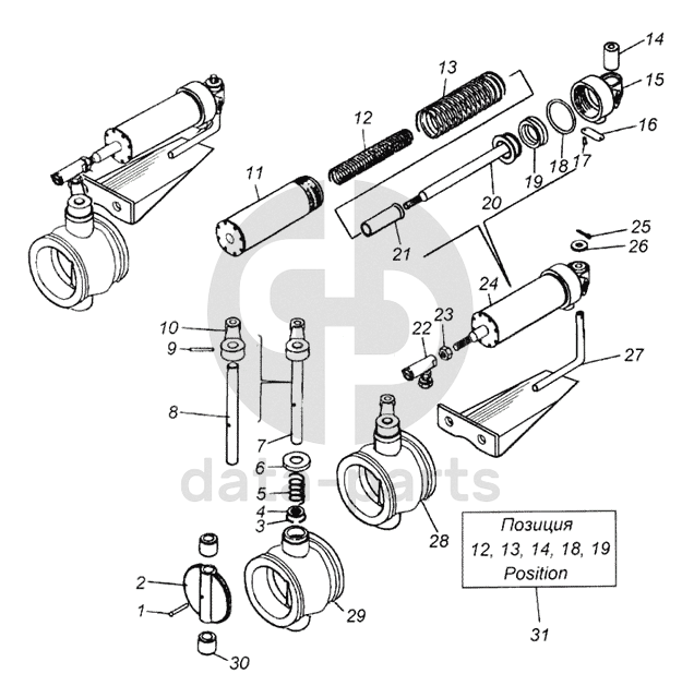 Цилиндр управления заслонкой в сборе