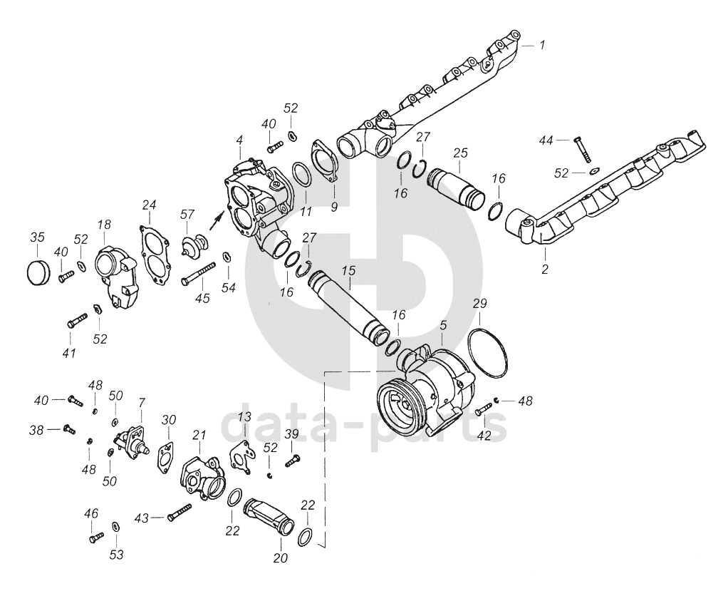 740.13-1303005 Установка водяного насоса, водяных труб и включателя гидромуфты