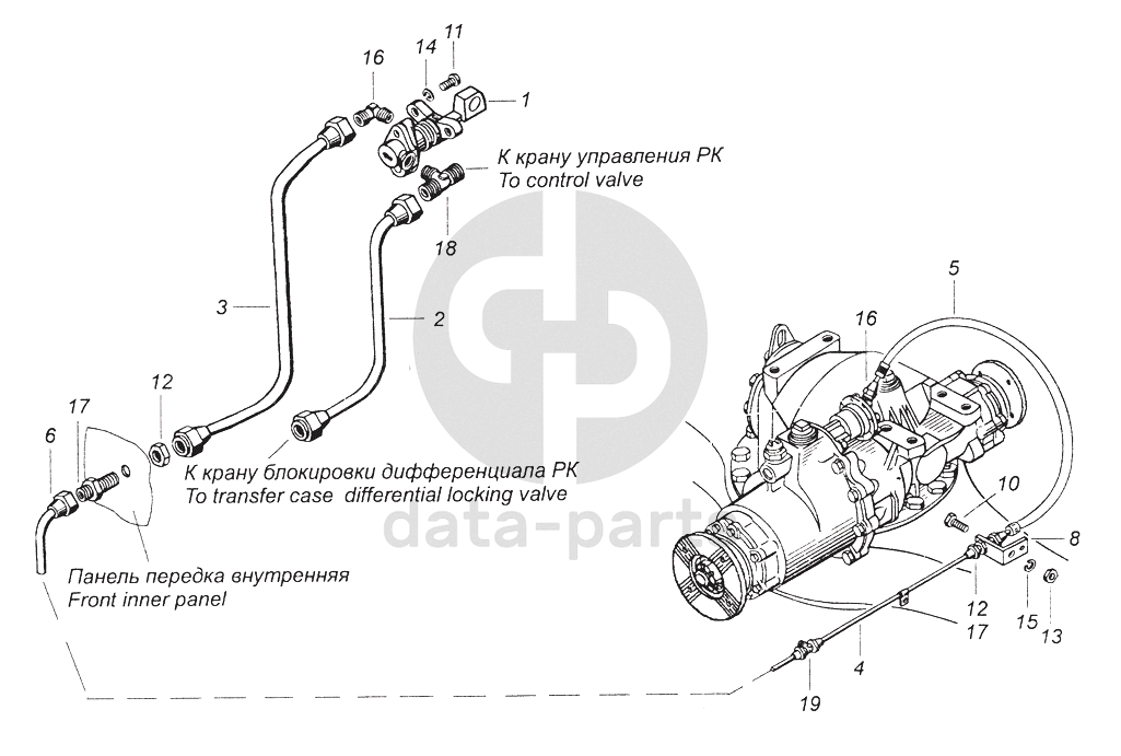 Кран включения блокировки межосевого дифференциала