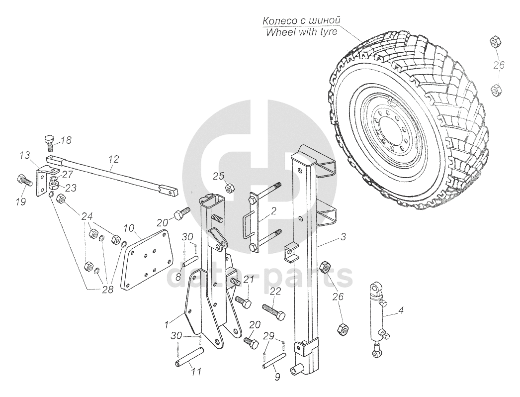 Ось КАМАЗ-43114 держателя колеса запасного