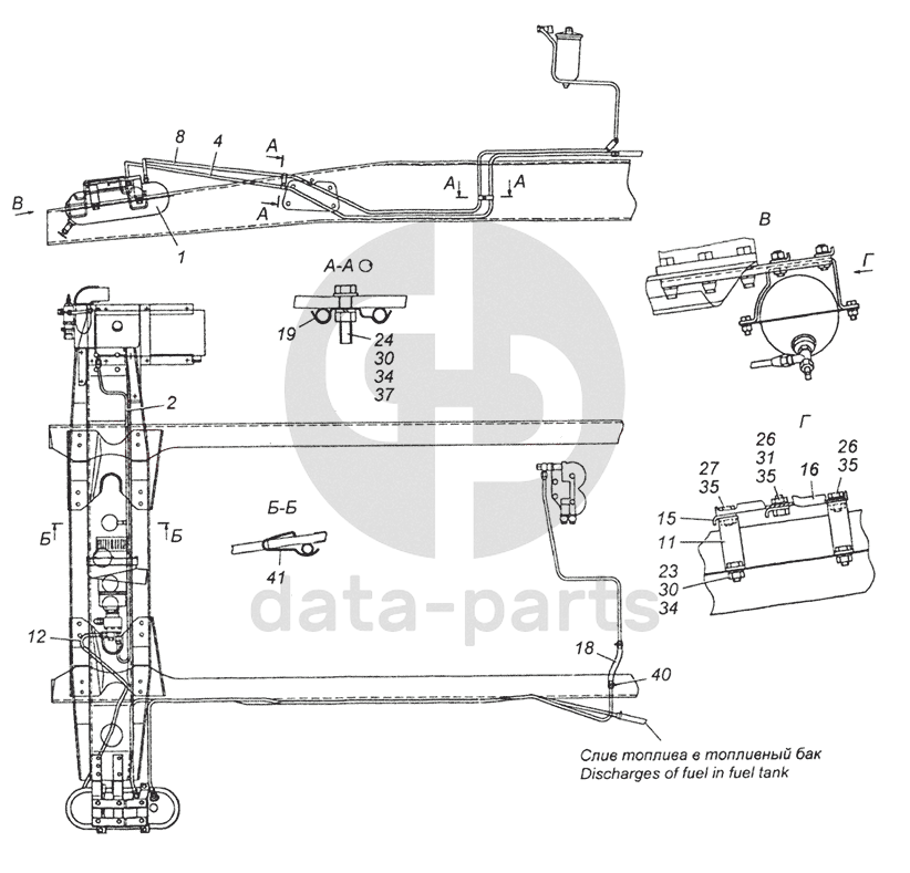 6350-1015017 Установка топливного бачка и топливопроводов предпускового подогревателя ПЖД-30