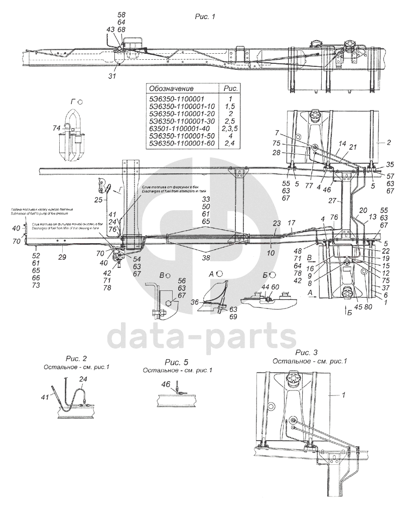 5Э6350-1100001 Установка топливных баков, фильтра грубой очистки топлива (ФГОТ) и топливопроводов