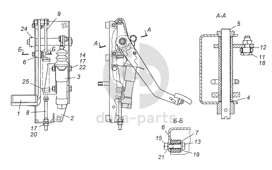 6520-1602008 Педаль сцепления с кронштейном и главным цилиндром в сборе