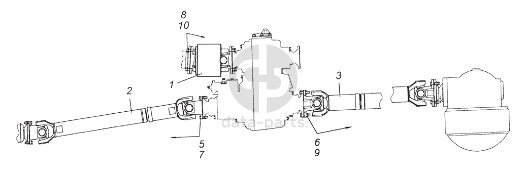 Вал карданный КАМАЗ заднего моста (4 отверстия торцевые шлицы) L=1546мм