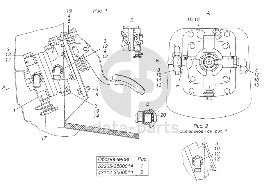 Кран КАМАЗ-ЕВРО тормозной 2-х секционный в сборе с педалью