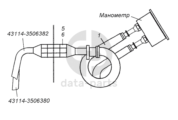 Трубка от крана управления стояночным тормозом к ускорительному клапану третья в сборе