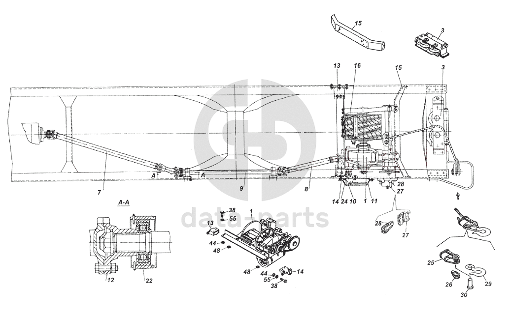Вал карданный лебедки передний в сборе