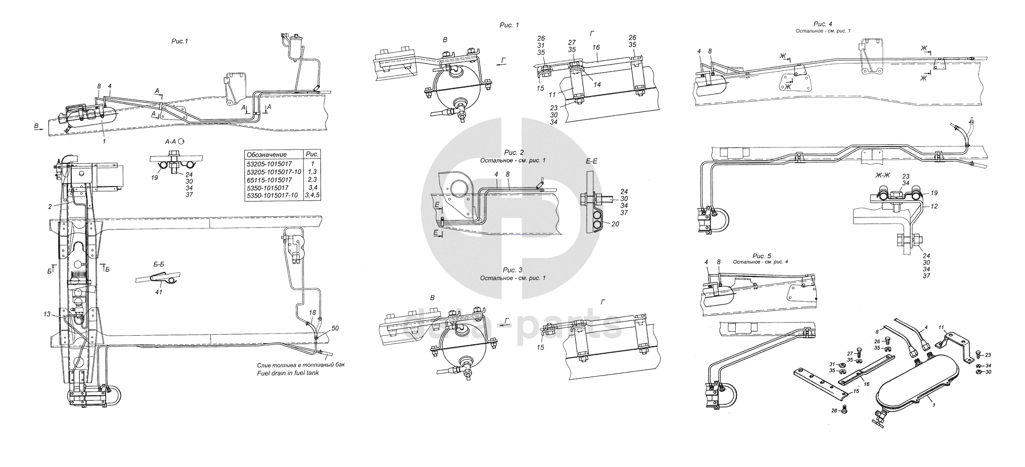 53205-1015017 Установка топливного бачка и топливопроводов предпускового подогревателя ПЖД-30